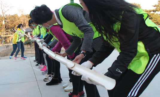 卓越圈也称动力圈需要所有人手拉手围成一圈,松开手,然后每人握住绳子的一部分围成一个圆,双脚合并,用脚后跟着地,所有人同时向后倒,让几个最重的人在这个绳子上走一圈。在走完这一圈的过程中是不能掉下来的,否则需要重新开始。在规定时间内,挑战走过人的数量!
